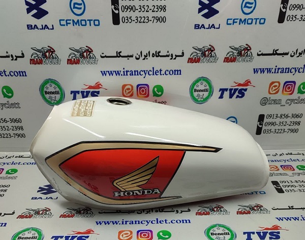 باک موتور سیکلت هندا سفید قرمز سوری هندا پر طلایی (با قاب بغل)