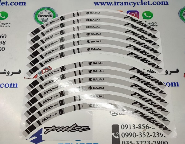 برچسب دور رینگ انواع موتور سیکلت باجاج NS200 نقره ای