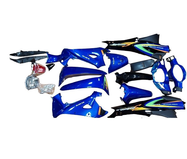 قاب کاور ست کامل بدنه موتور سیکلت طرح ویو ایرانی ( خطر راهنما بلوری و برچسب ) آبی